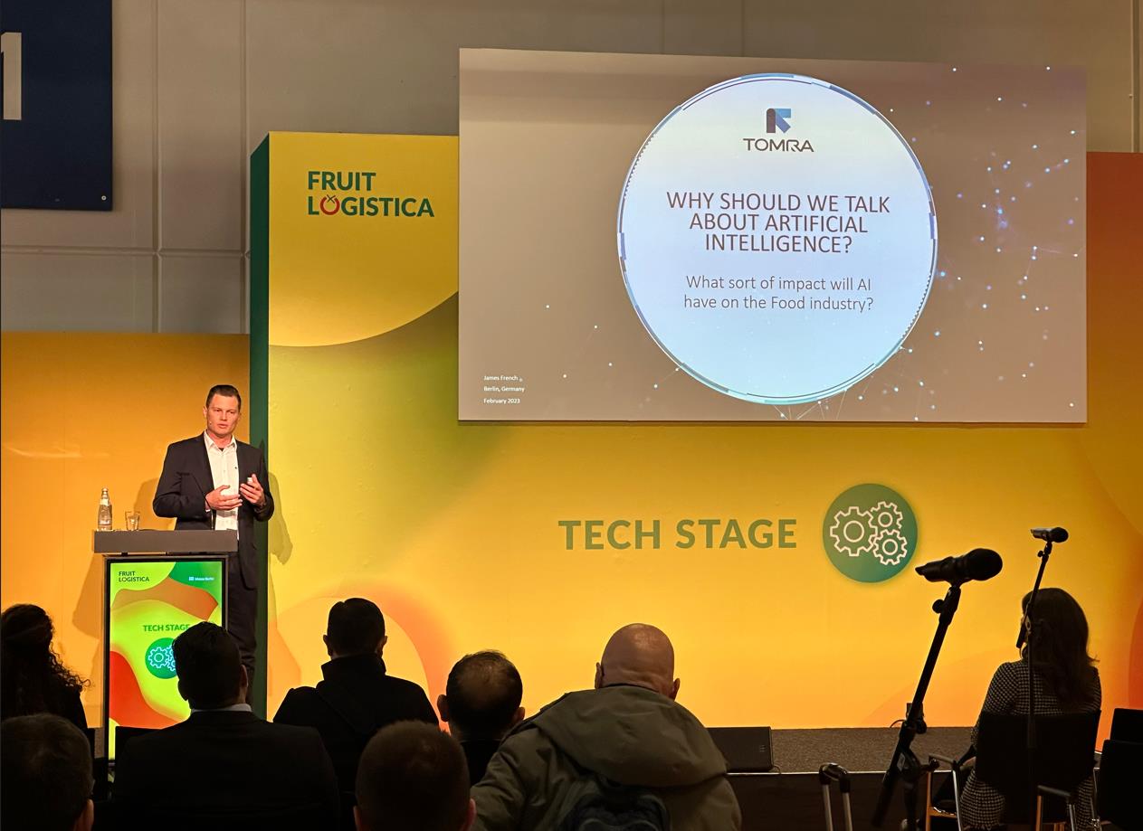在果蔬展的第二天,陶朗新鮮食品創新部門負責人 James French 在同期舉辦的科技舞臺上做了 45 分鐘的主題演講,演講主旨為人工智能對食品行業的影響。