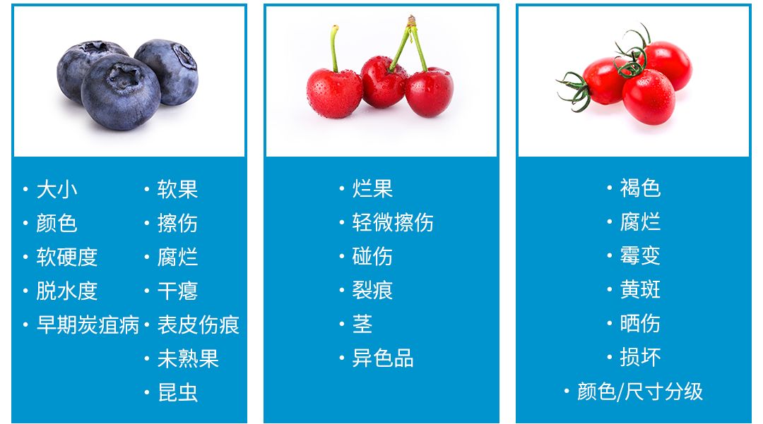 使用LUCAi人工智能系統,可以讓客戶決定產品的質量和瑕疵特性,是藍莓等(deng)小型(xing)漿(jiang)果分選的(de)利器。