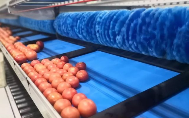 投產至今,雙通道的(de)InVision9000CIR光學分(fen)選分(fen)級(ji)系(xi)統可(ke)實現5噸/小時的(de)產能。其中,分(fen)選分(fen)級(ji)系(xi)統能針(zhen)對(dui)番(fan)茄(qie)的(de)尺(chi)寸、重(zhong)量(liang)和表面瑕疵進行分(fen)選和分(fen)級(ji),準確去除青果和爛果,確保每個包裝里(li)的(de)好果品質均勻,且各(ge)批次(ci)品質穩定。包裝系(xi)統則能把分(fen)級(ji)后(hou)(hou)的(de)番(fan)茄(qie)填裝到可(ke)重(zhong)復回收利用的(de)塑料周(zhou)轉(zhuan)筐(kuang)里(li)。當(dang)產品送(song)到超市并(bing)售完后(hou)(hou),塑料周(zhou)轉(zhuan)筐(kuang)會運(yun)回再次(ci)使用。