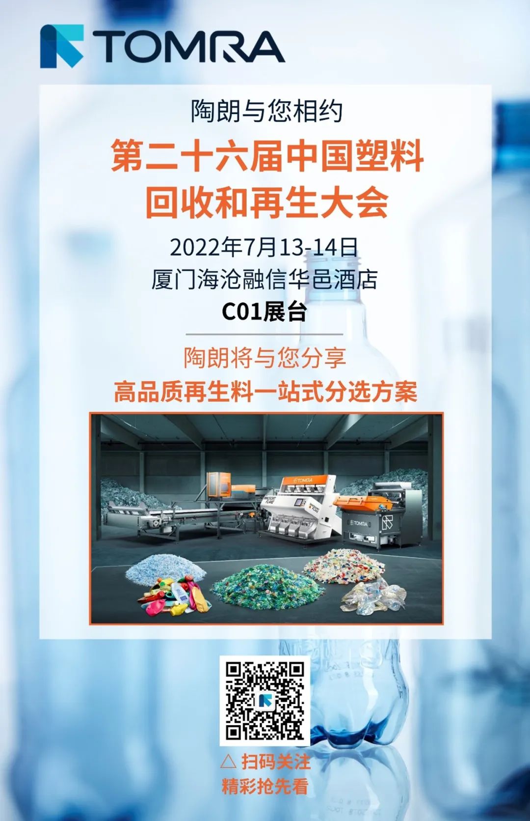 蓬勃七(qi)月,生機盎然。ChinaReplas2022(春季)第二十(shi)六屆(jie)中國塑料回(hui)收和再(zai)(zai)生大會(hui)于7月13日(ri)-14日(ri)在廈門進行。本屆(jie)大會(hui)以“建設中國PCR高品質再(zai)(zai)生工廠(chang)”為主題,吸引了全國再(zai)(zai)生塑料行業人士(shi)共聚一(yi)堂。