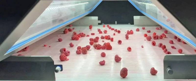 Vitafoods在奇廉的(de)(de)廠(chang)房(fang)最新安裝了TOMRA 5B分選(xuan)(xuan)機,性能卓越(yue),已(yi)經成為分選(xuan)(xuan)冷凍(dong)樹莓的(de)(de)核心設備(bei)。陶(tao)朗(lang)食品這(zhe)款分選(xuan)(xuan)機,配備(bei)傳送帶,專為高效分選(xuan)(xuan)而設計,果(guo)蔬產品中,選(xuan)(xuan)定的(de)(de)異物和瑕疵,哪怕(pa)再小,也能精準剔除(chu),確保廠(chang)房(fang)產品的(de)(de)食品安全(quan)。