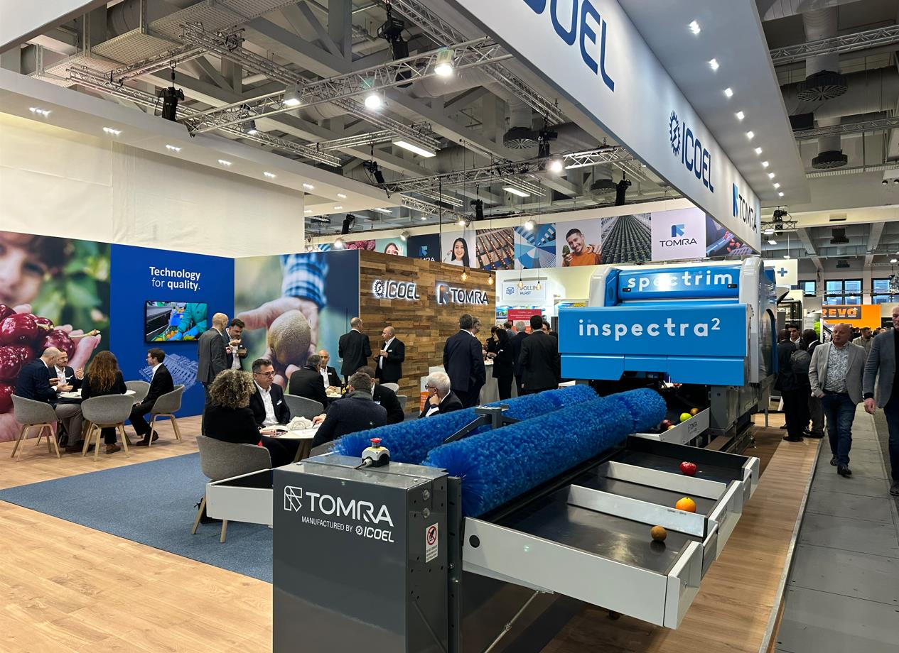 陶朗本次創新地使用高達 2.2 米、寬 2.5 米的全息投影儀來展示解決方案,這些3D影像生動展示了陶朗各系列分選設備,如 TOMRA 3A、TOMRA 5A、TOMRA 5B、TOMRA 5C 和 TOMRA 5S Advanced 等分選機;以及用于櫻桃果柄分離的 Cascade Singulator;CURO-16 小果包裝系統;KATO 藍莓精準分級系統;以及帶有 UltraView 檢測模塊、業內首屈一指的新鮮農產品分選分級平臺 Spectrim 和 Inspectra2 內部品質檢測系統。