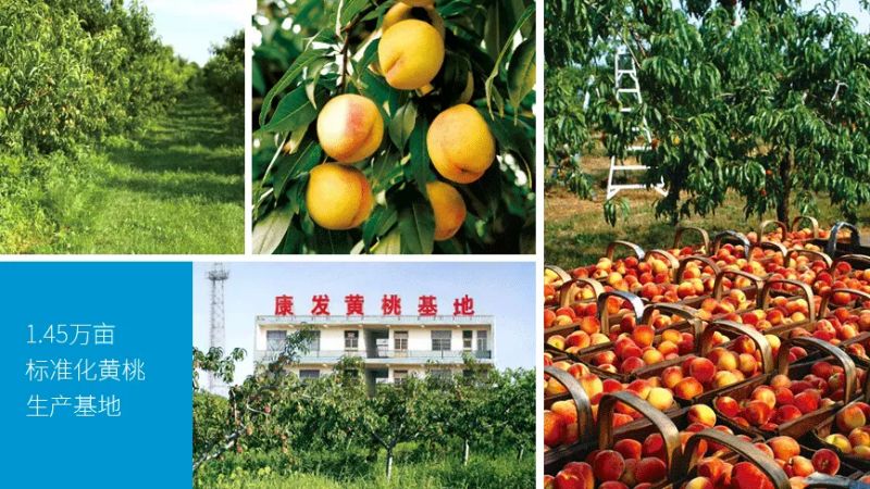康發建設了標準化黃桃(tao)生產基地1.45萬(wan)畝,引進、培育(yu)、開發、種植(zhi)十幾個(ge)加工型黃肉(rou)桃(tao)優良品種。